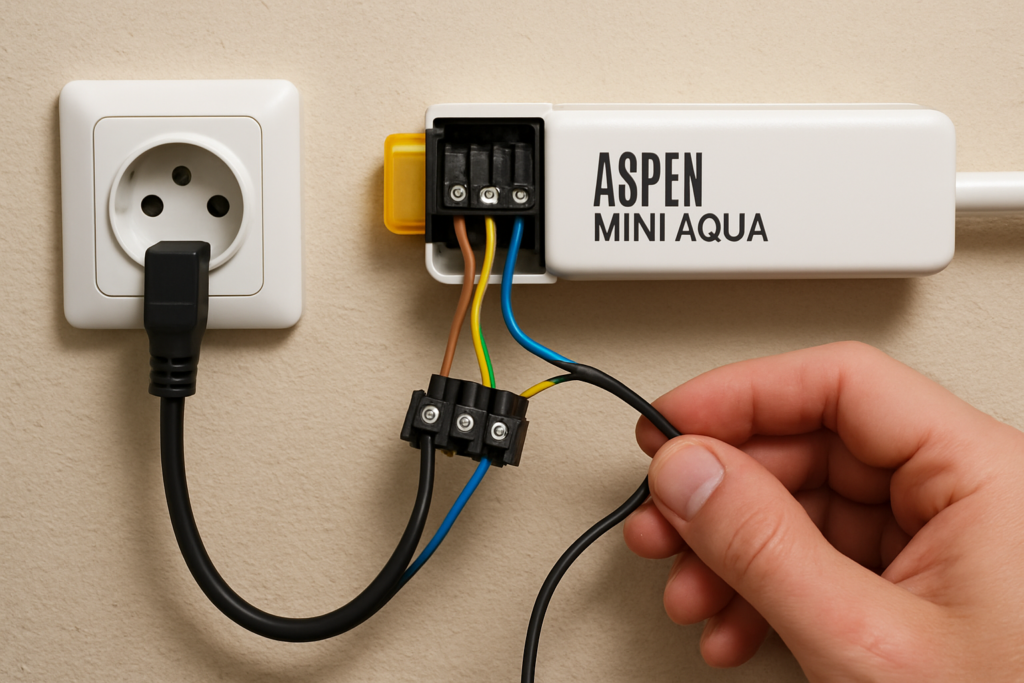 Aspen Mini Aqua : branchement électrique 220V et alimentation